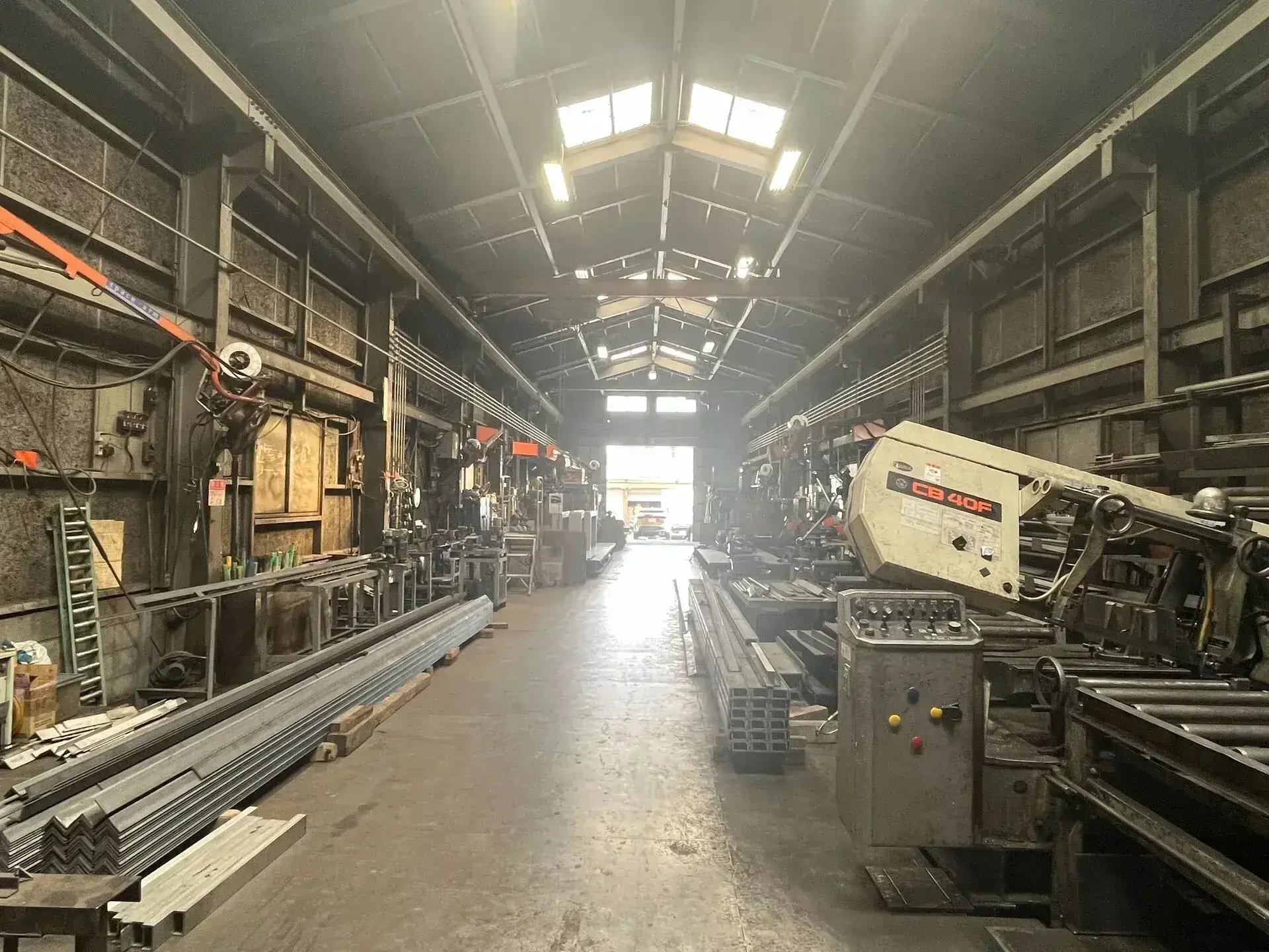 ダイエーテックでは、豊中市に構える自社工場にて、製缶や鉄骨架台の加工に対応する多種多様な設備を導入しています。角鋼やH形鋼を高精度に切断するバンドソーや、ステンレス溶接に必要なTIG・半自動溶接機、さらには電解研磨機による仕上げ処理設備などを完備。
